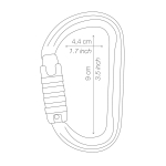 Conector aluminio con bloqueo de seguridad en forma de D para conectar los aparatos al arnés.